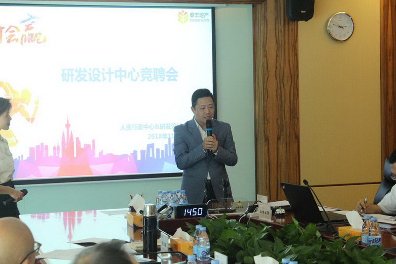 為滿足公司業(yè)務(wù)發(fā)展而產(chǎn)生的人才需求,拓寬員工職業(yè)發(fā)展通道,讓有能力的員工脫穎而出,2018年11月1日,泰豐地產(chǎn)研發(fā)設(shè)計(jì)中心聯(lián)合人資行政中心組織召開的“2018年泰豐地產(chǎn)研發(fā)設(shè)計(jì)中心競(jìng)聘會(huì)”于集團(tuán)大會(huì)議室隆重舉行。泰豐地產(chǎn)總裁袁毅先生,人資行政副總裁馬欣先生,運(yùn)營(yíng)副總裁王春濤先生,規(guī)劃發(fā)展副總裁徐健成先生以及部分中心負(fù)責(zé)人等共逾十人擔(dān)任評(píng)委,出席參與了此次競(jìng)聘活動(dòng)。