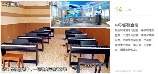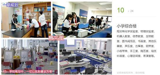 規(guī)劃有化學(xué)實驗室、物理實驗室、機(jī)器人教室、信息教室、生物教室、圖書閱覽區(qū)、書畫室、其他樂器室、聲樂室、古箏室、鋼琴室、小練琴房、手工室、陶藝室、培優(yōu)補(bǔ)弱室、心理咨詢室、表演室等。