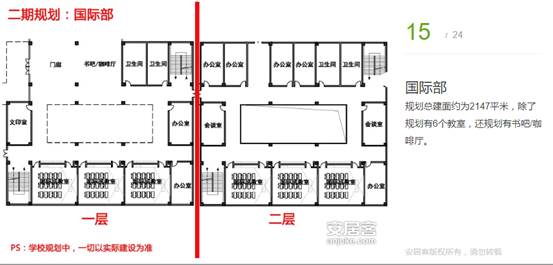 規(guī)劃總建面約為2147平米,除了規(guī)劃有6個教室,還規(guī)劃有書吧/咖啡廳。